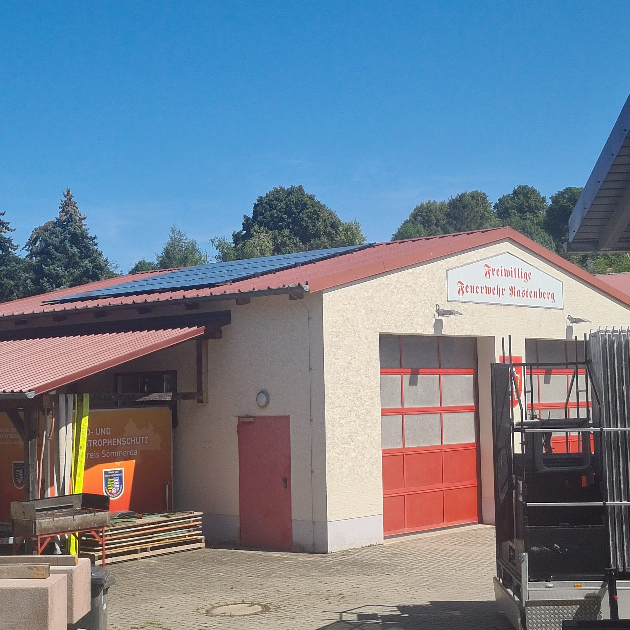 Einen Schritt weiter zur Nutzung erneuerbarer Energiequellen ist nun die Stadt Rastenberg. Hier wurde kürzlich eine Photovoltaik Anlage auf das Dach der Feuerwehr und des Bauhofs gebaut. Die Bürgerenergiegenossenschaft Thüringer Becken hat diese aufgebaut und der Stadt entstehen 0€ Investitionskosten. Dank dieser Anlage kann die Stadt aber jährlich etwa 3000 Euro an Energiekosten einsparen.