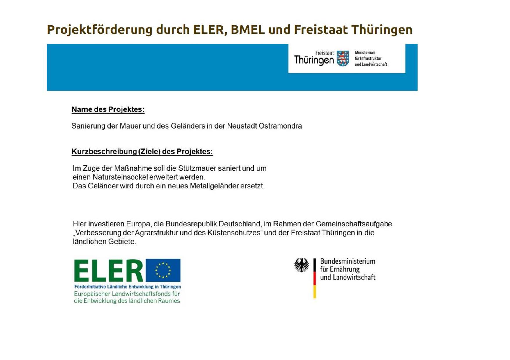 Projektförderung durch ELER, BMEL und Freistaat Thüringen Sanierung der Mauer und des Geländers in der Neustadt Ostramondra Förderprojekte Öff. Bekanntmachung Ostramondra